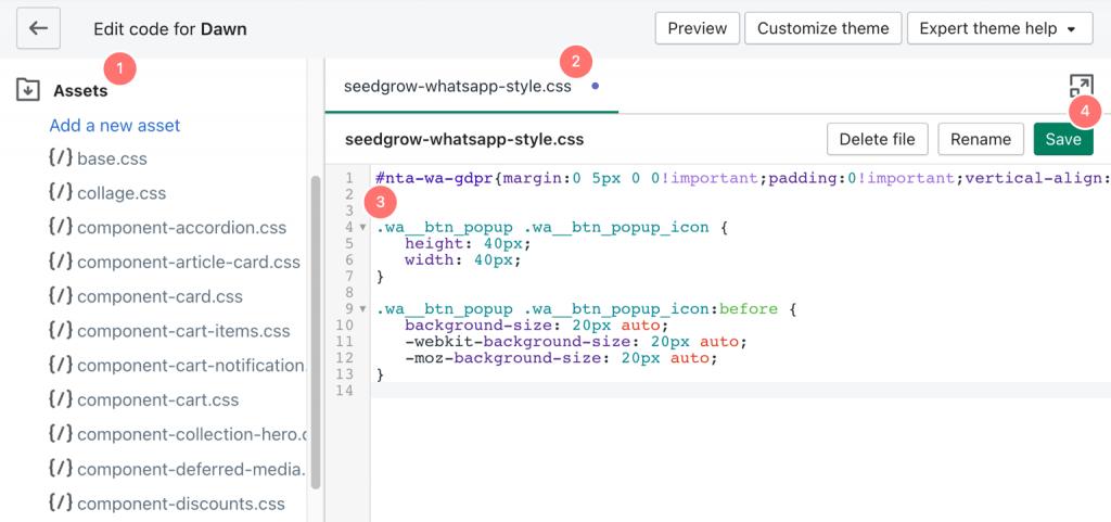 seedgrow-whatsapp-style.cssfile - Add your code