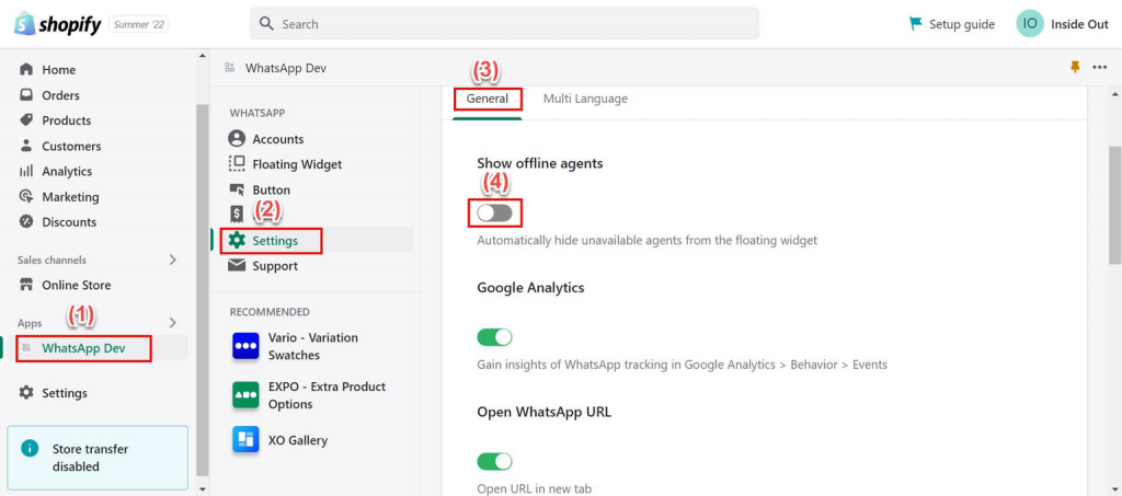 To achieve this, go to WhatsApp Chat Widget > Settings > General > Show offline agents (Toggle ON or OFF).