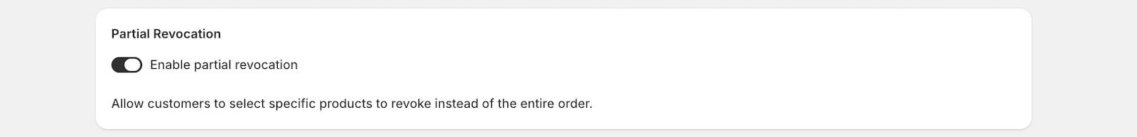 Partial withdrawal (or partial revocation) allows customers to select specific items from an order to return, rather than revoking the entire purchase.